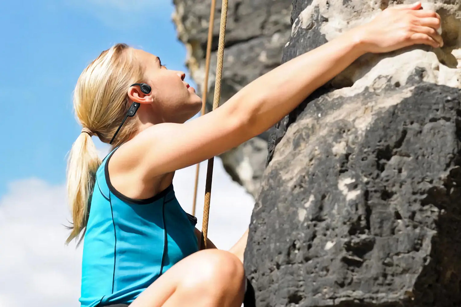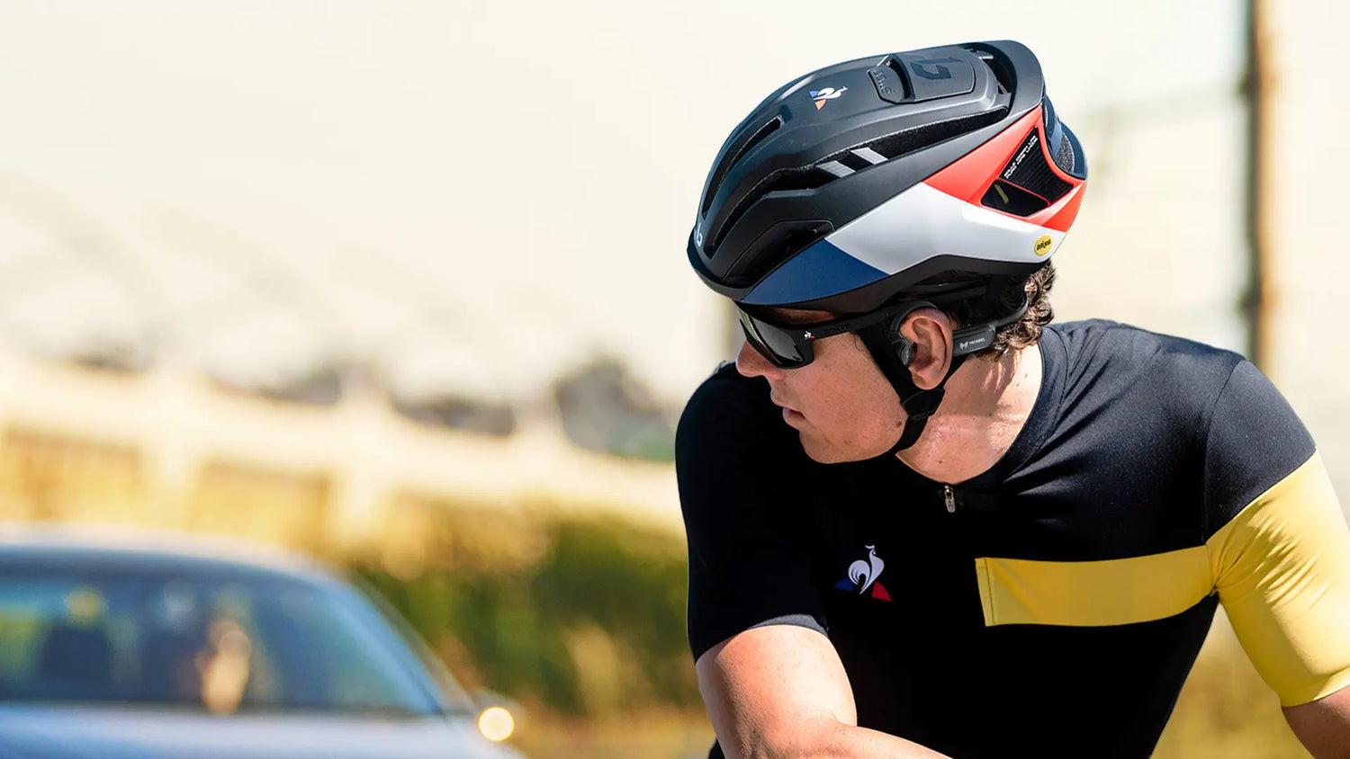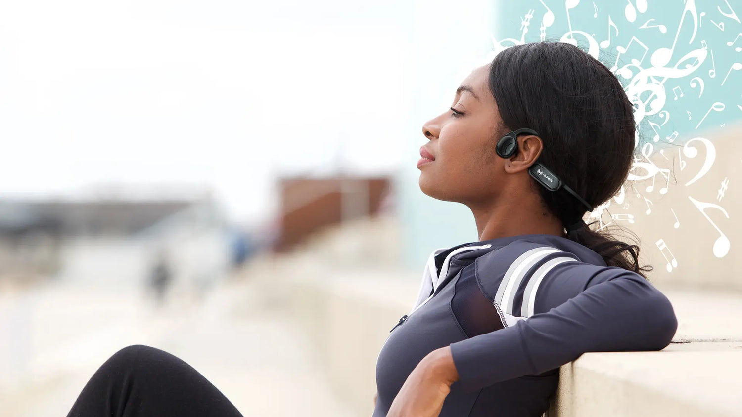 The open-ear design allows to enjoy music while being aware of surrounding sounds, and maintaining communication with the others through the microphone.