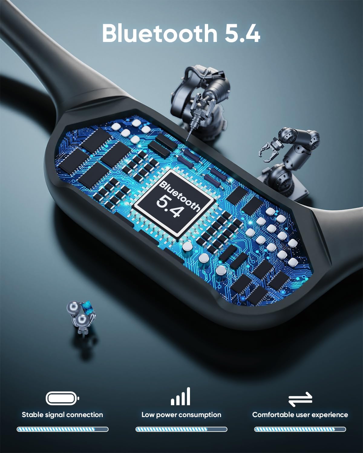 - Bluetooth 5.4-bone conduction headphones adopts Bluetooth 5.4 technology, which ensures a stable Bluetooth connection, high-efficiency and durability, and a maximum Bluetooth connection range of 33 feet (10 meters). Compatible with iOS and Android devices, you can listen to music, audiobooks and make calls.